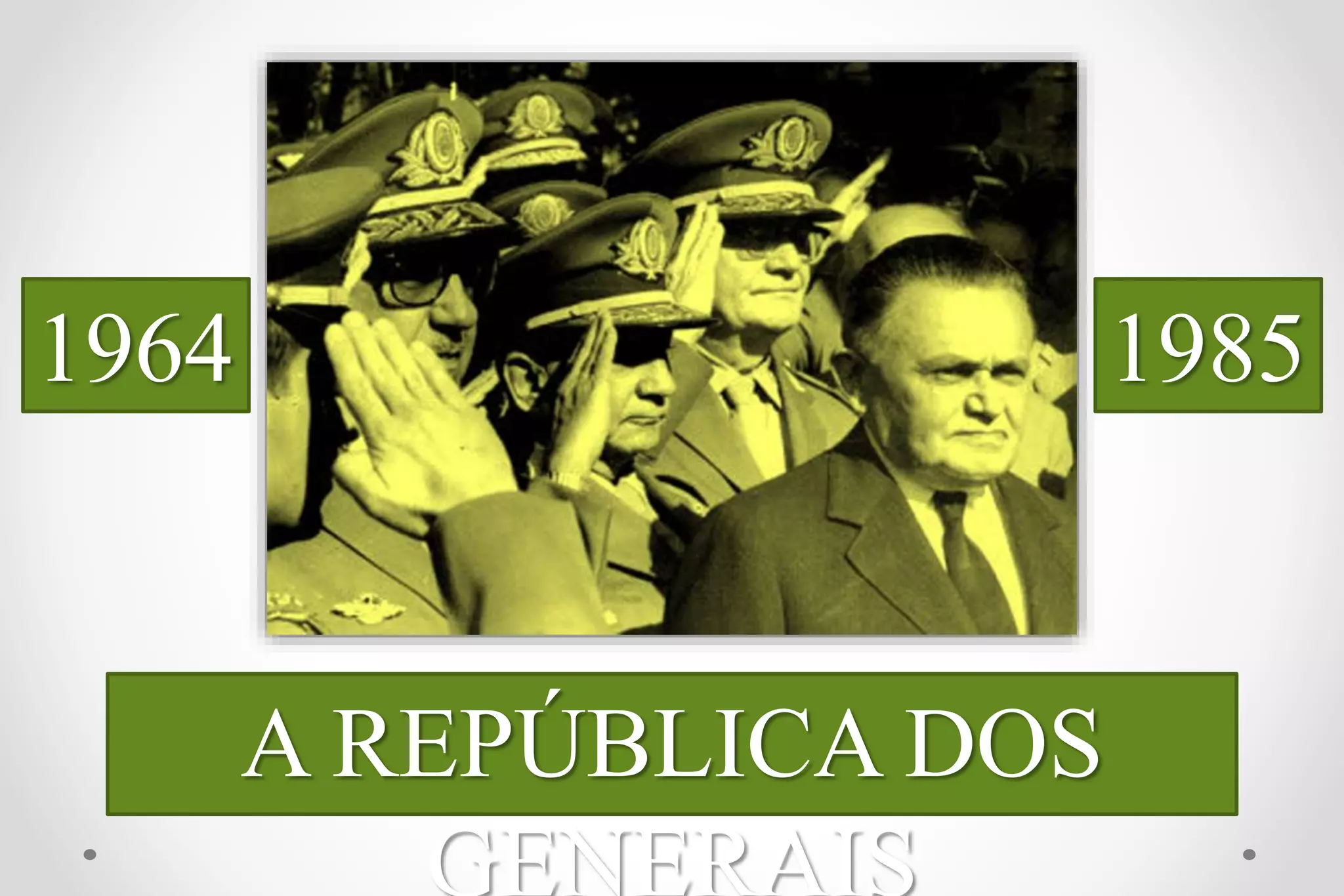 O documento resume os principais acontecimentos políticos e econômicos do período da ditadura militar no Brasil entre 1964 e 1974, incluindo o golpe de 1964, os governos de Castelo Branco, Costa e Silva e Médici, a promulgação de Atos Institucionais, o "milagre econômico brasileiro" e a repressão a opositores do regime.