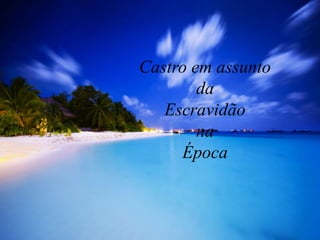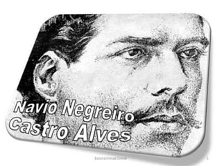 O documento descreve como Castro Alves, um poeta baiano do século XIX, usou sua poesia para protestar contra a escravidão no Brasil e defender os direitos dos escravos, apesar de ter nascido em uma família abastada. Ele escreveu versos condenando o tratamento dado aos negros escravizados e recitou publicamente seu famoso poema "Navio Negreiro" aos 21 anos para denunciar o comércio de escravos.