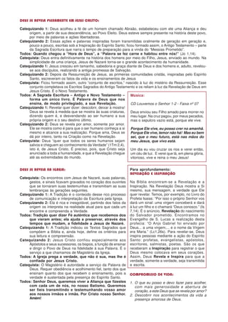 Deus se revela de diversas maneiras: na criação, na história do povo de Israel, de forma perfeita em Jesus Cristo, e na Igreja. A Bíblia, composta pelo Antigo e Novo Testamento, é a Palavra de Deus revelada. A Tradição ajuda a preservar a fé ao longo dos tempos.