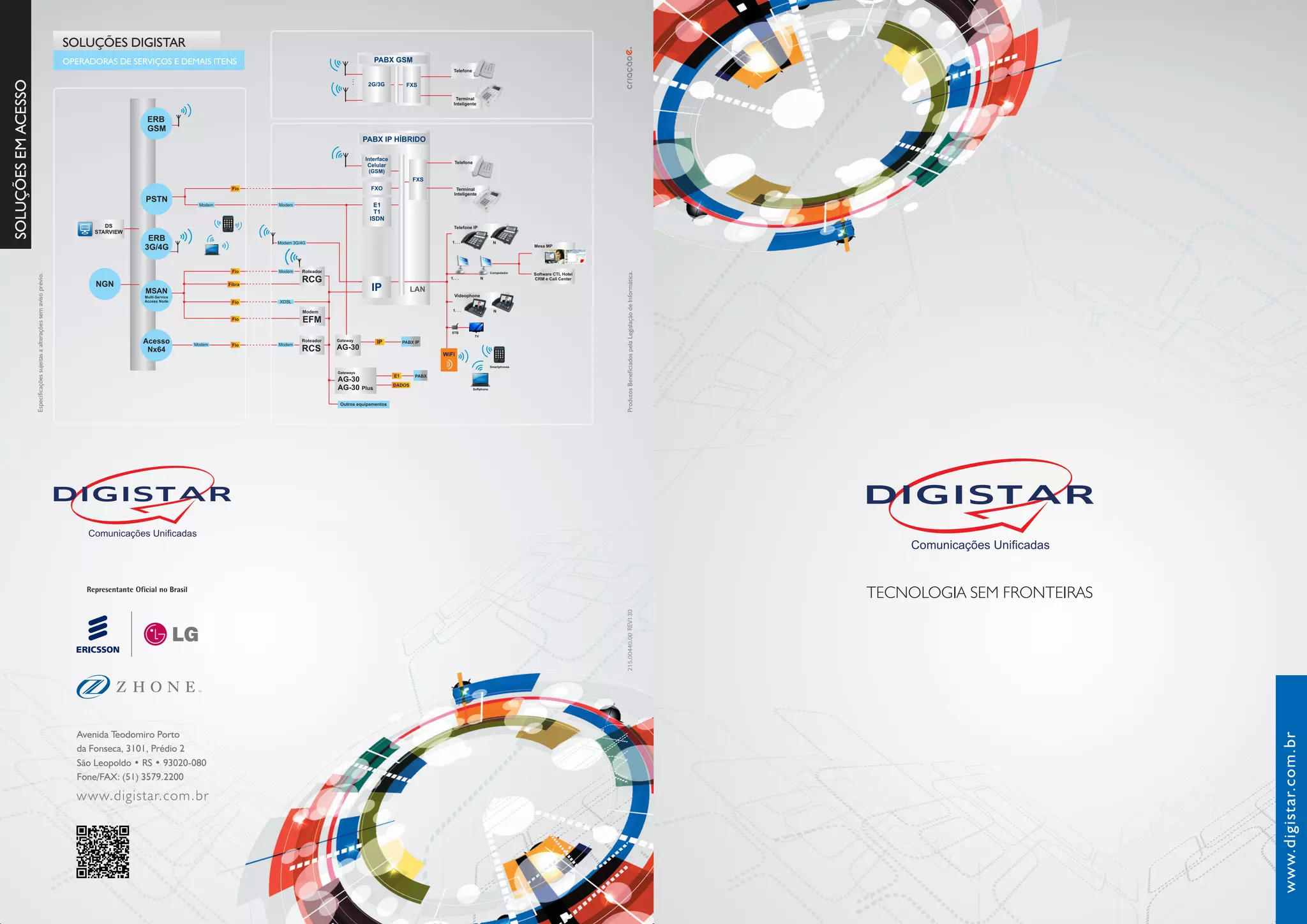 O documento descreve os produtos e serviços da empresa Digistar, incluindo roteadores, gateways, PABX, ONTs GPON e sistemas de gerenciamento de rede. A Digistar oferece soluções de comunicação para diversos setores e possui parcerias com fornecedores internacionais como Zhone e Ericsson-LG.