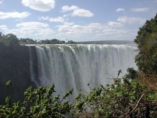 As Cataratas Victoria são um salto d'água do rio Zambeze localizado na fronteira entre a Zambia e o Zimbabwe. Com aproximadamente 1,7 km de largura e 108 m de altura, é considerado um espetáculo extraordinário devido ao estreito abismo onde a água cai. Foi batizada em homenagem à rainha Victoria pelo explorador David Livingstone em 1855.