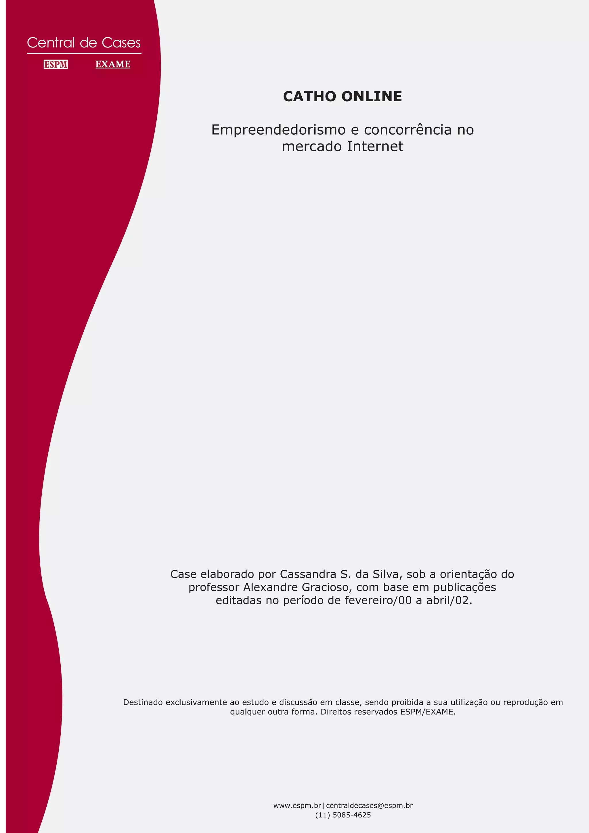 O documento discute o papel da empresa Catho no mercado de recrutamento online no Brasil. Apesar das dificuldades econômicas e da baixa penetração da internet no país, a Catho investiu nesse negócio e hoje é uma das maiores empresas nesse segmento. No entanto, enfrenta muita concorrência de outros sites.