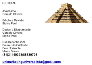 O documento contém informações de contato e redes sociais da empresa Asteka Móveis Planejados, que oferece serviços de planejamento de móveis para diferentes ambientes, como cozinhas, quartos e banheiros. Inclui endereços, números de telefone e links para perfis em redes sociais. É um convite para entrada em contato e solicitação de orçamentos.