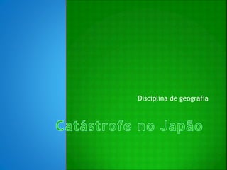 O documento descreve catástrofes naturais no Japão em 2011, incluindo um terremoto de magnitude 8.9 na escala de Richter e um tsunami subsequente. O terremoto atingiu principalmente a cidade de Sendai e forçou a evacuação da usina nuclear de Fukushima devido a gases tóxicos. O tsunami atingiu ondas de até 10 metros e fez desaparecer um comboio e um navio com 100 passageiros. As consequências incluíram danos a infraestrutura, mortes, problemas psicológicos e mudan