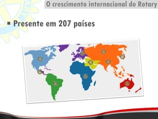 O documento discute os objetivos e atividades do Rotary Club, incluindo projetos de água, combate à fome e promoção da saúde e educação. Também aborda brevemente as teorias de Adam Smith sobre o capitalismo, Karl Marx sobre o socialismo e John Maynard Keynes sobre o monetarismo, além de citações destes pensadores.