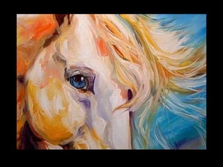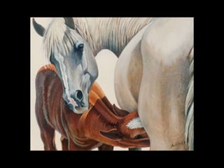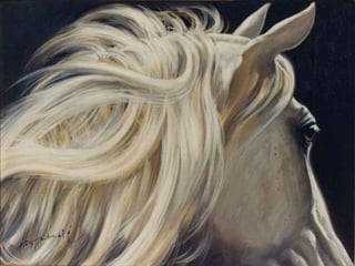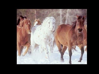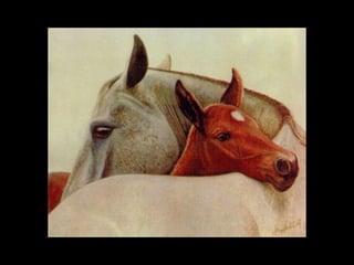 O documento discute a importância histórica dos cavalos para o progresso humano, destacando sua lealdade e capacidade de encontrar o caminho de volta para casa. Também lista algumas das raças de cavalos mais conhecidas e termina com uma citação sobre a liberdade dos cavalos.