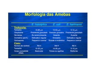 1. O documento descreve três protozooses cavitárias: tricomoníase, giardíase e amebíase.