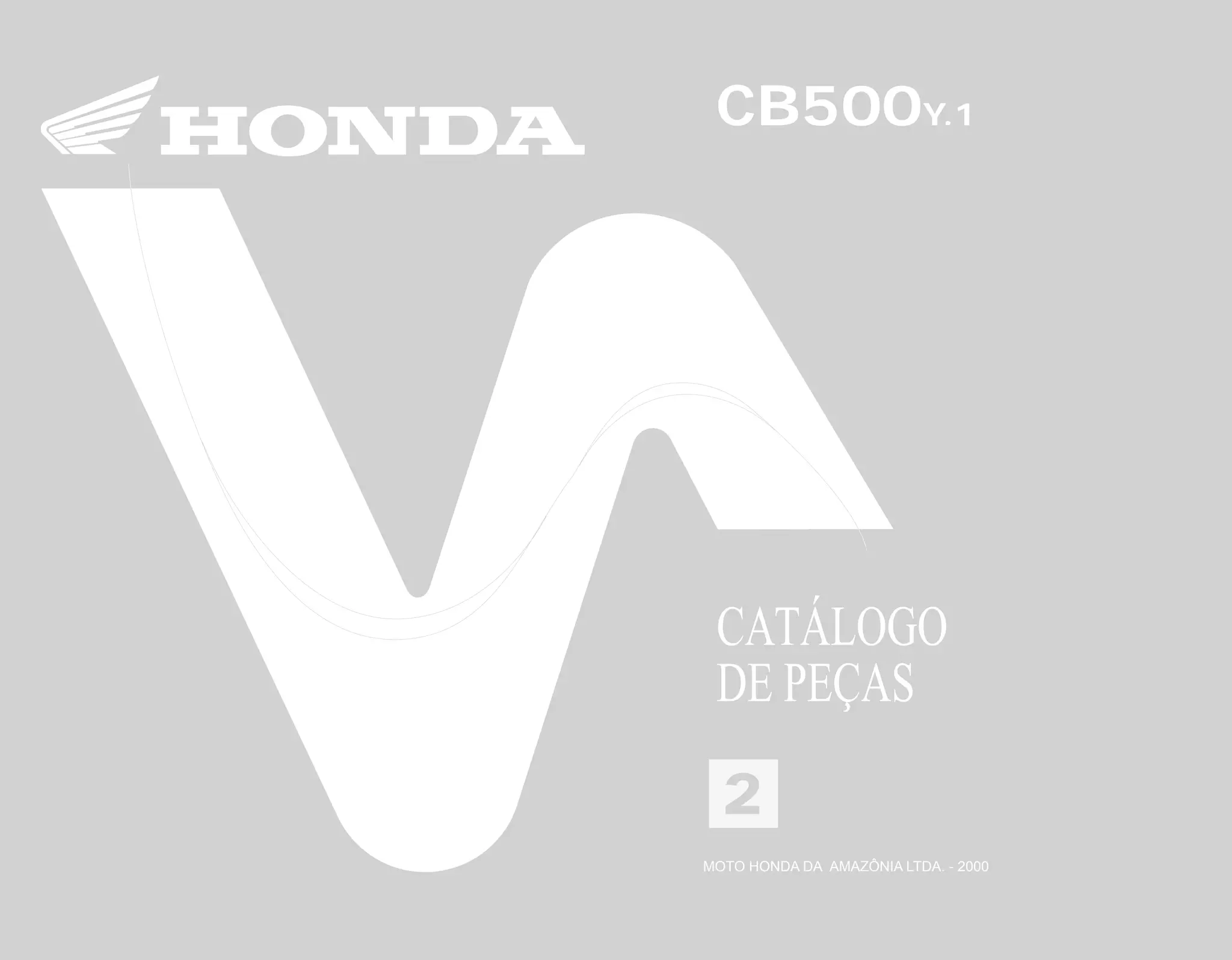 Este documento é um catálogo de peças para as motocicletas Honda CB500Y.1. Ele contém instruções gerais sobre como usar o catálogo, uma lista de abreviaturas, índices ilustrados e detalhados de peças para os grupos do motor e do chassi, além de tabelas com números, nomes e detalhes de cada peça.