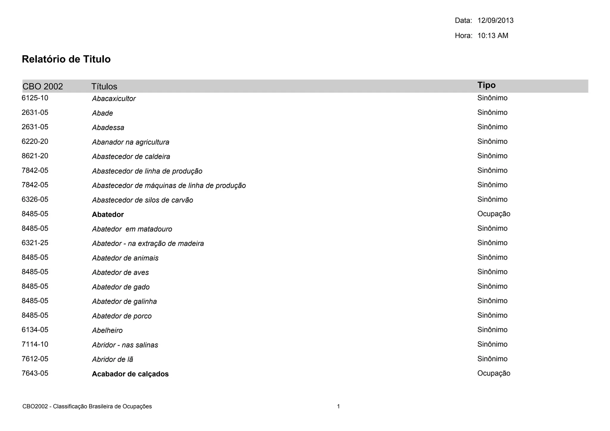 CBO2002 - Classificação Brasileira de Ocupações