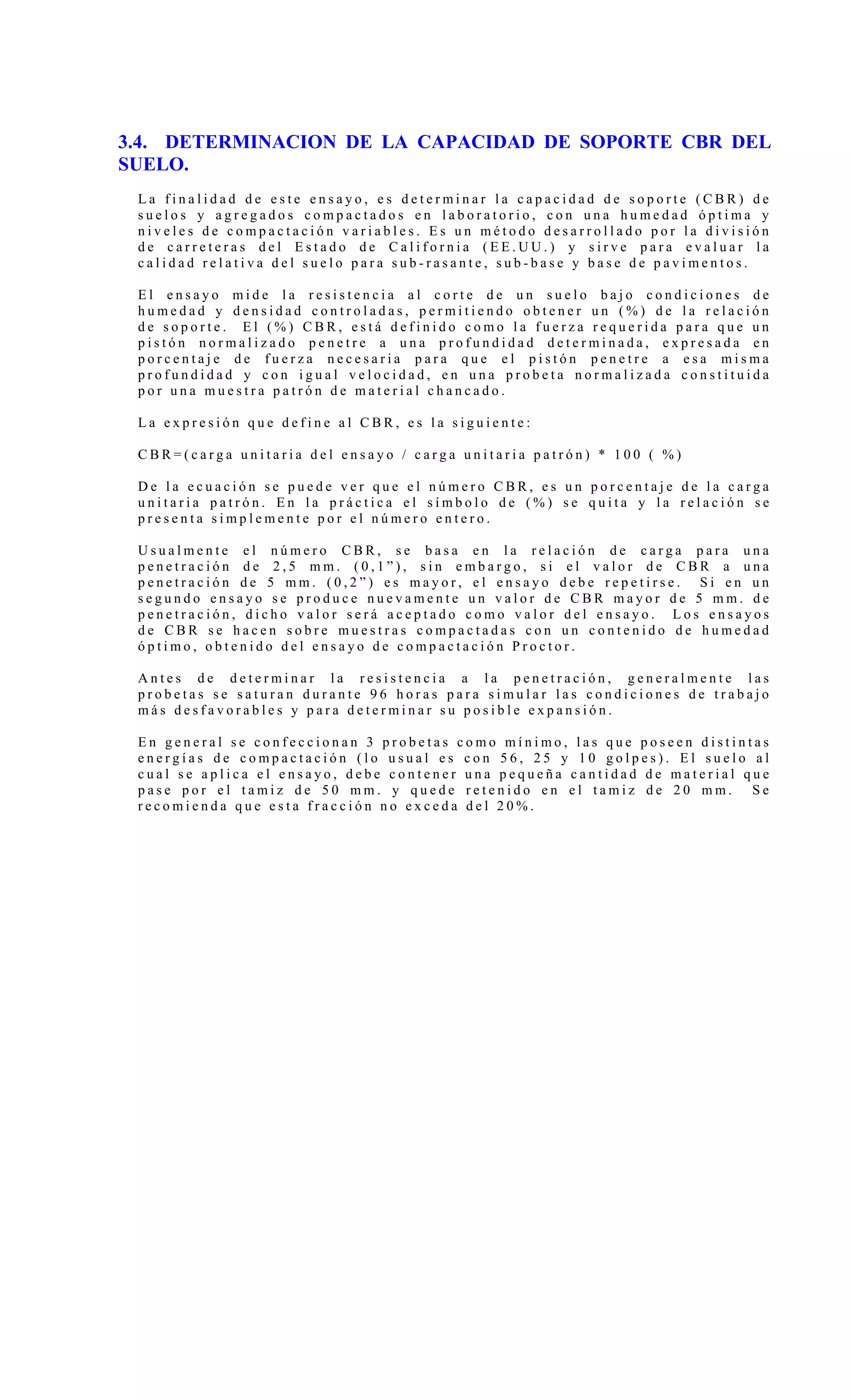 Este documento descreve o método CBR (California Bearing Ratio), um ensaio para determinar a capacidade de suporte de solos e agregados compactados em laboratório. O ensaio mede a resistência ao corte de um solo sob condições controladas de umidade e densidade, permitindo obter um percentual da relação de suporte. O ensaio CBR é realizado em amostras compactadas com umidade ótima, utilizando diferentes energias de compactação.