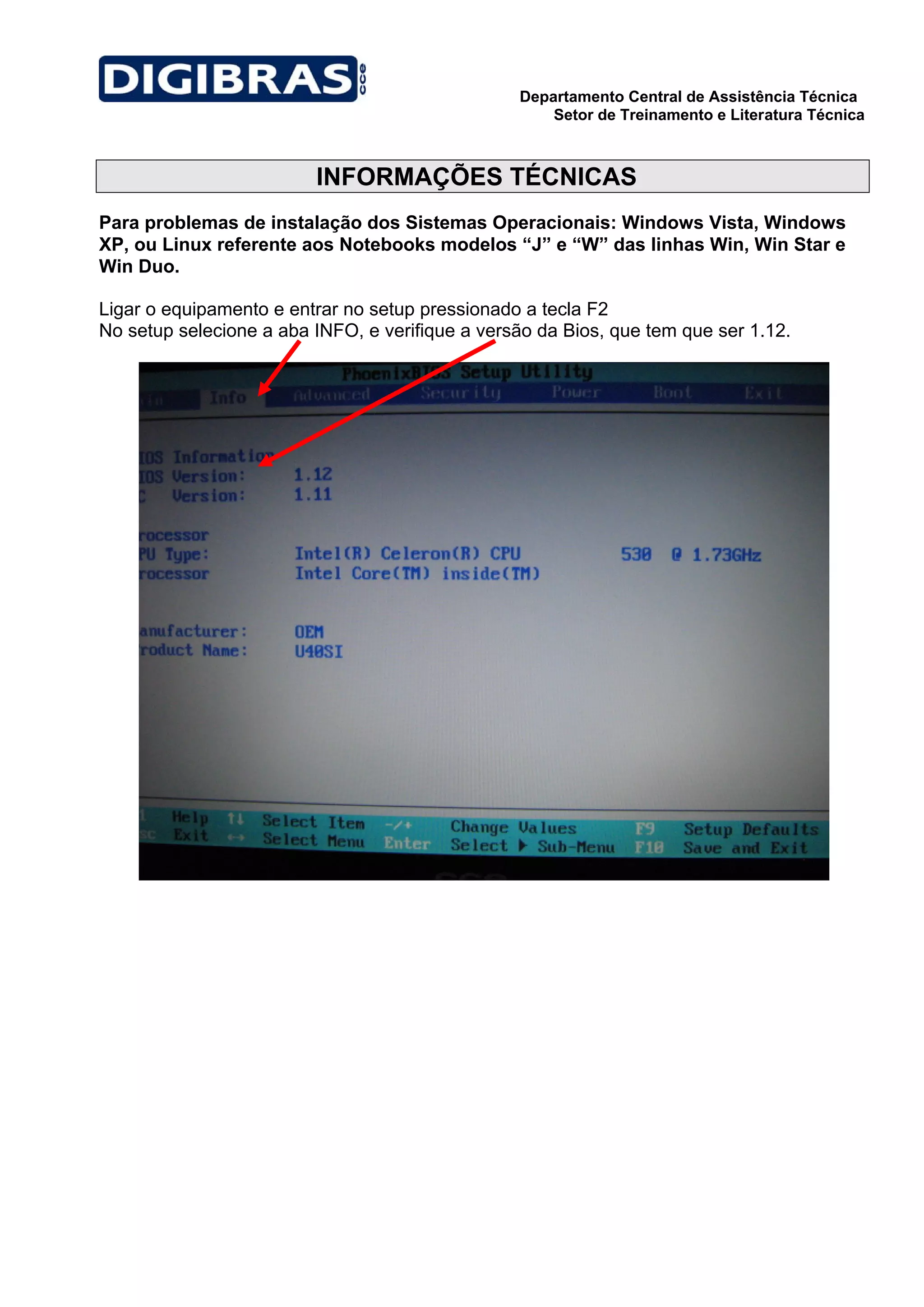 Instruções para instalar sistemas operacionais Windows Vista, Windows XP ou Linux nos notebooks modelos "J" e "W" das linhas Win, Win Star e Win Duo incluem entrar no setup pressionando F2, verificar a versão da BIOS que deve ser 1.12, configurar a opção C3 Function para "Disable" para Linux ou "Enable" para Windows XP e permanecer "Enable" ou mudar para "Disable" para Windows Vista dependendo se houver tela azul, e então salvar as alterações e reinstalar o sistema operacional.