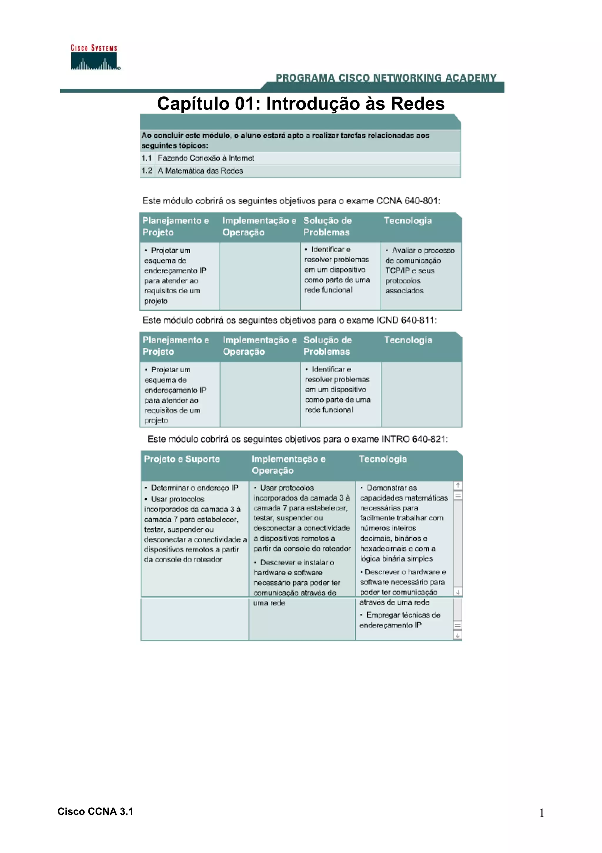 Este capítulo introduz conceitos básicos sobre redes e a conexão de computadores à Internet. Explica os requisitos para conexão, incluindo conexão física, lógica e aplicações. Também descreve componentes de computadores e placas de rede, além de instalação e tipos de conectividade.