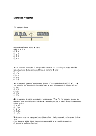 Este documento contém 28 questões sobre cálculos envolvendo mol, massa atômica e quantidade de matéria. As questões abordam tópicos como conversão entre massa e número de átomos, cálculo de massa atômica a partir da composição isotópica e problemas envolvendo reações químicas. Há também um gabarito com as respostas para as questões propostas.