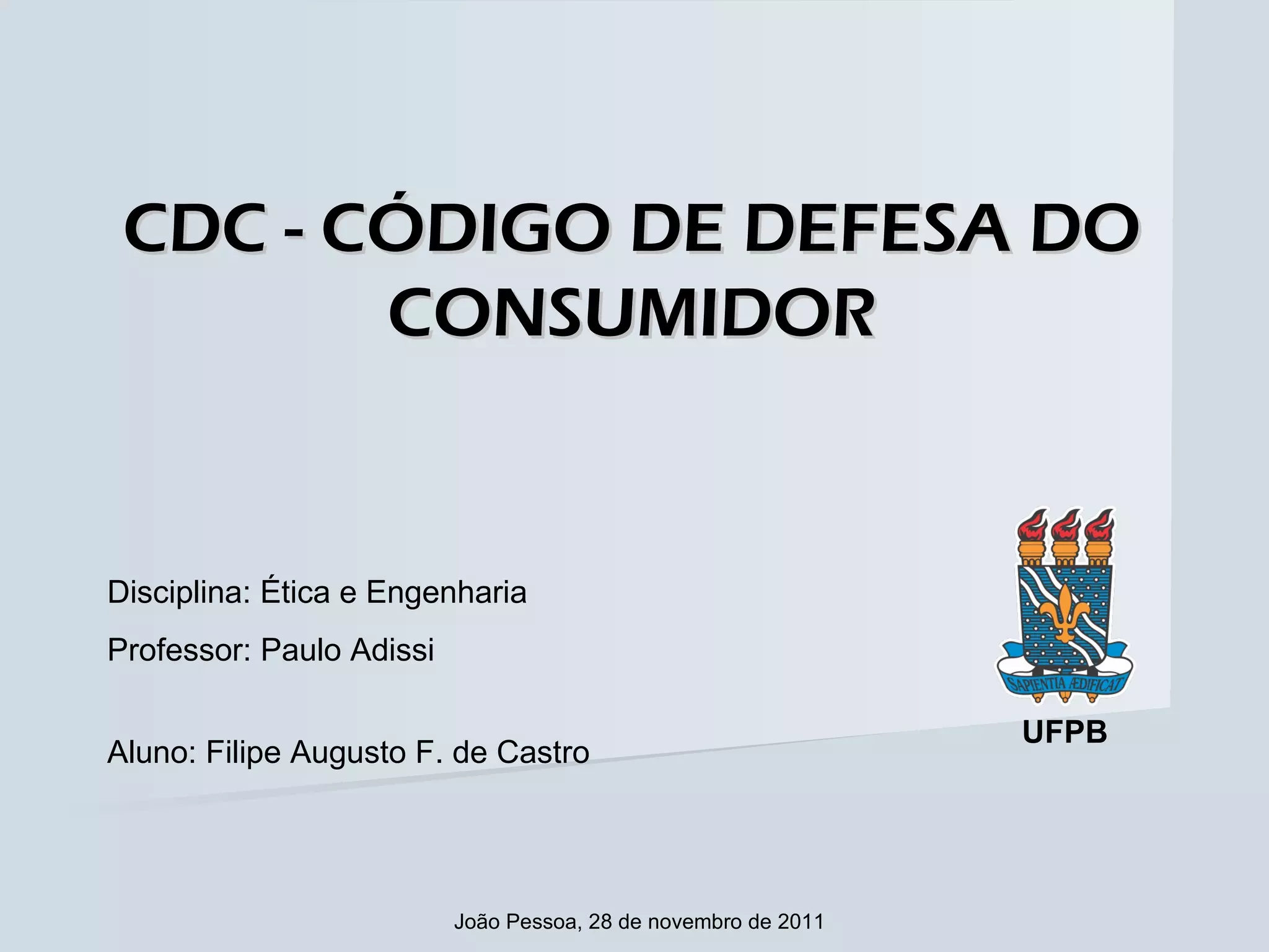 O documento discute o Código de Defesa do Consumidor brasileiro, introduzindo seus conceitos-chave como produto, serviço, consumidor e fornecedor. Ele também lista os dez direitos básicos dos consumidores segundo o código e discute a ética no consumo.