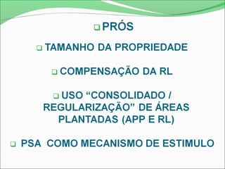 O documento discute o Código Florestal Brasileiro vigente e a proposta de Novo Código Florestal. O código atual protege Áreas de Preservação Permanente (APP) e Reserva Legal para preservar recursos naturais. A proposta reduziria proteções e anistiaria desmatamentos, gerando conflitos sobre impactos ambientais e aumento do desmatamento. A turma debate os prós e contras da proposta.