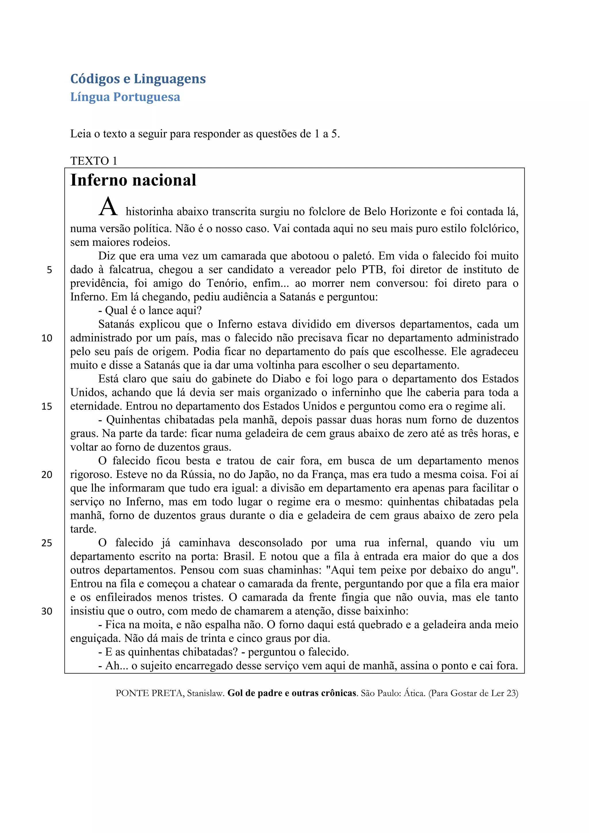 Leia o texto a seguir para responder as questões de 1 a 5.