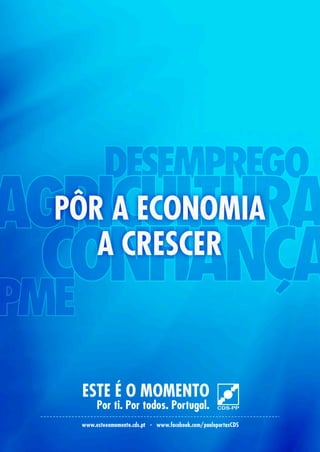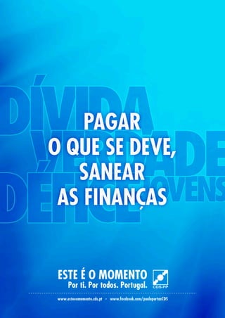 O documento discute medidas para sanear as finanças públicas de Portugal. Propõe (1) limitar constitucionalmente o endividamento do Estado, (2) travar o agravamento da dívida pública e tratar da sua redução ao pagar os compromissos assumidos, e (3) suspender projetos caros como o TGV para evitar mais endividamento.