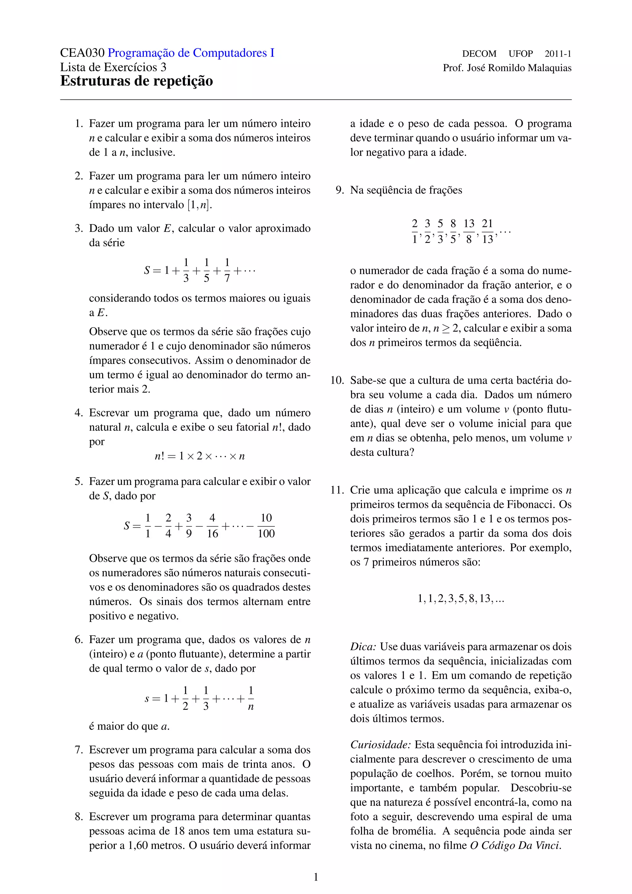 11. Crie uma aplicação que calcula e imprime os n