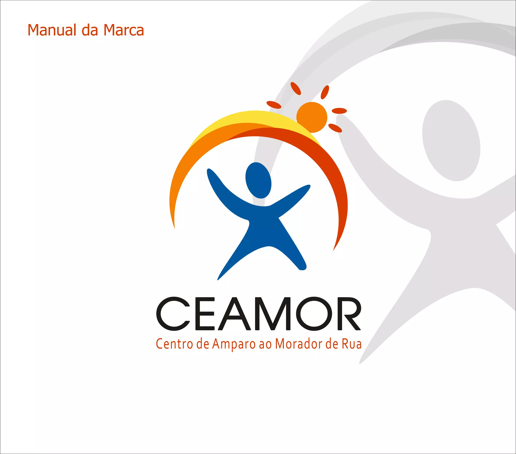 Este manual apresenta a marca do Centro de Amparo ao Morador de Rua (CEAMOR) e fornece diretrizes sobre sua aplicação correta. A marca foi desenvolvida para transmitir valores de acolhimento, proteção, renovação e esperança por meio de formas e cores otimistas. O documento explica a construção da marca, cores, tipografias, redução, fundos e aplicações corretas.