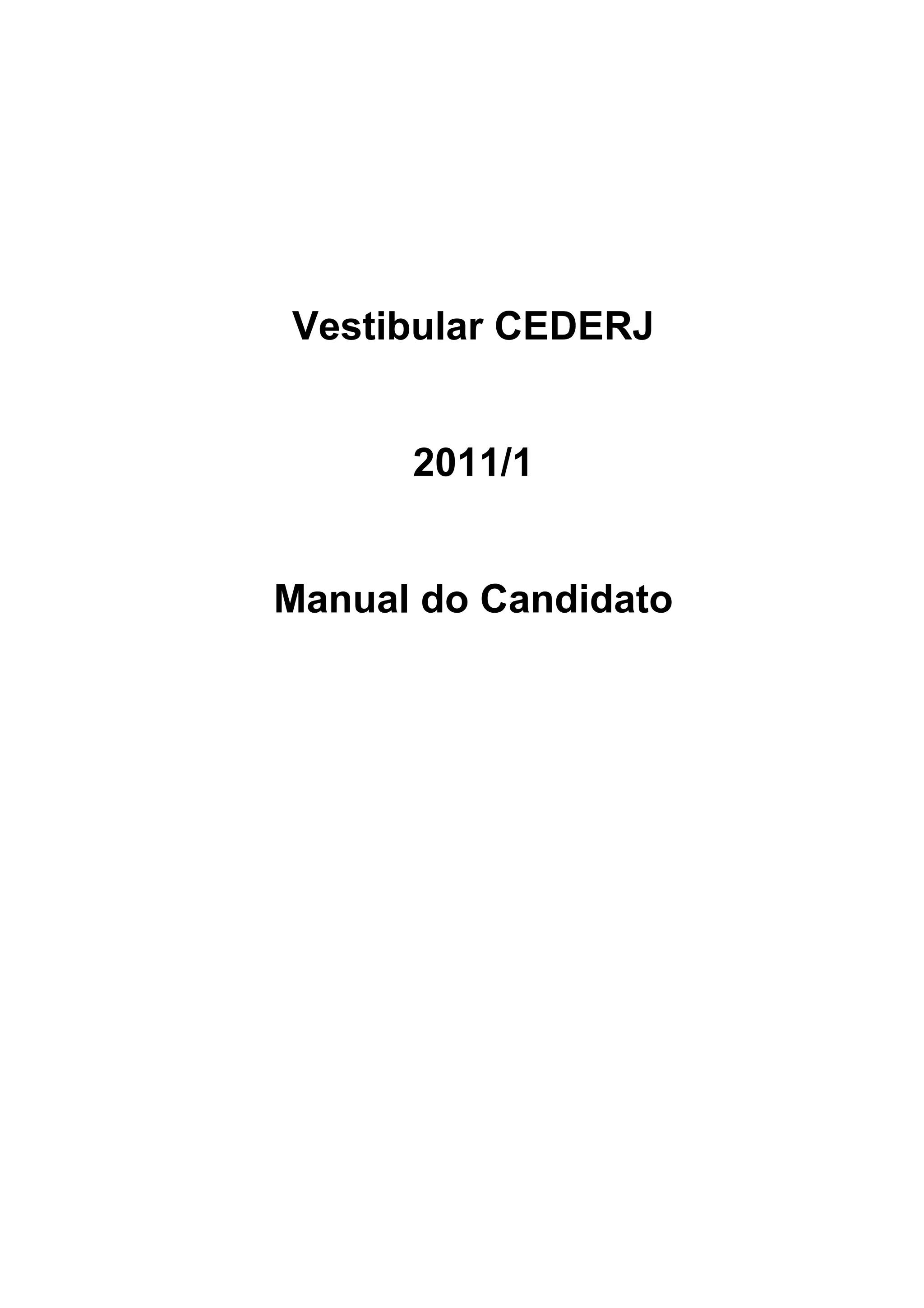 Este documento fornece informações sobre o vestibular do Consórcio CEDERJ em 2011, incluindo: 1) quadro de vagas oferecidas nos cursos de licenciatura e tecnologia nos polos regionais, 2) instruções sobre como se inscrever no vestibular, pagando taxa de inscrição, e 3) datas importantes do cronograma do vestibular.
