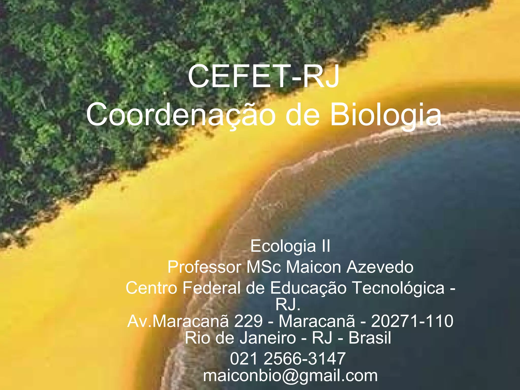 ![CEFET-RJ Coordenação de Biologia Ecologia II Professor MSc Maicon Azevedo Centro Federal de Educação Tecnológica - RJ. Av.Maracanã 229 - Maracanã - 20271-110 Rio de Janeiro - RJ - Brasil 021 2566-3147 [email_address]](https://image.slidesharecdn.com/cefet-rjv-100318210216-phpapp01/75/Cefet-RJ-V-1-2048.jpg)