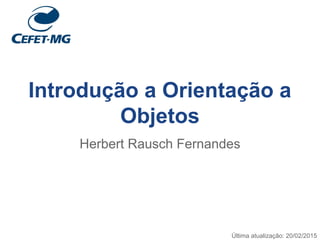 O documento introduz os conceitos de classe e objeto na orientação a objetos. Explica que uma classe é um modelo abstrato que define atributos e operações, enquanto um objeto é uma instância concreta de uma classe. Fornece exemplos de classes como Ponto e ContaCorrente e como objetos são criados a partir delas.