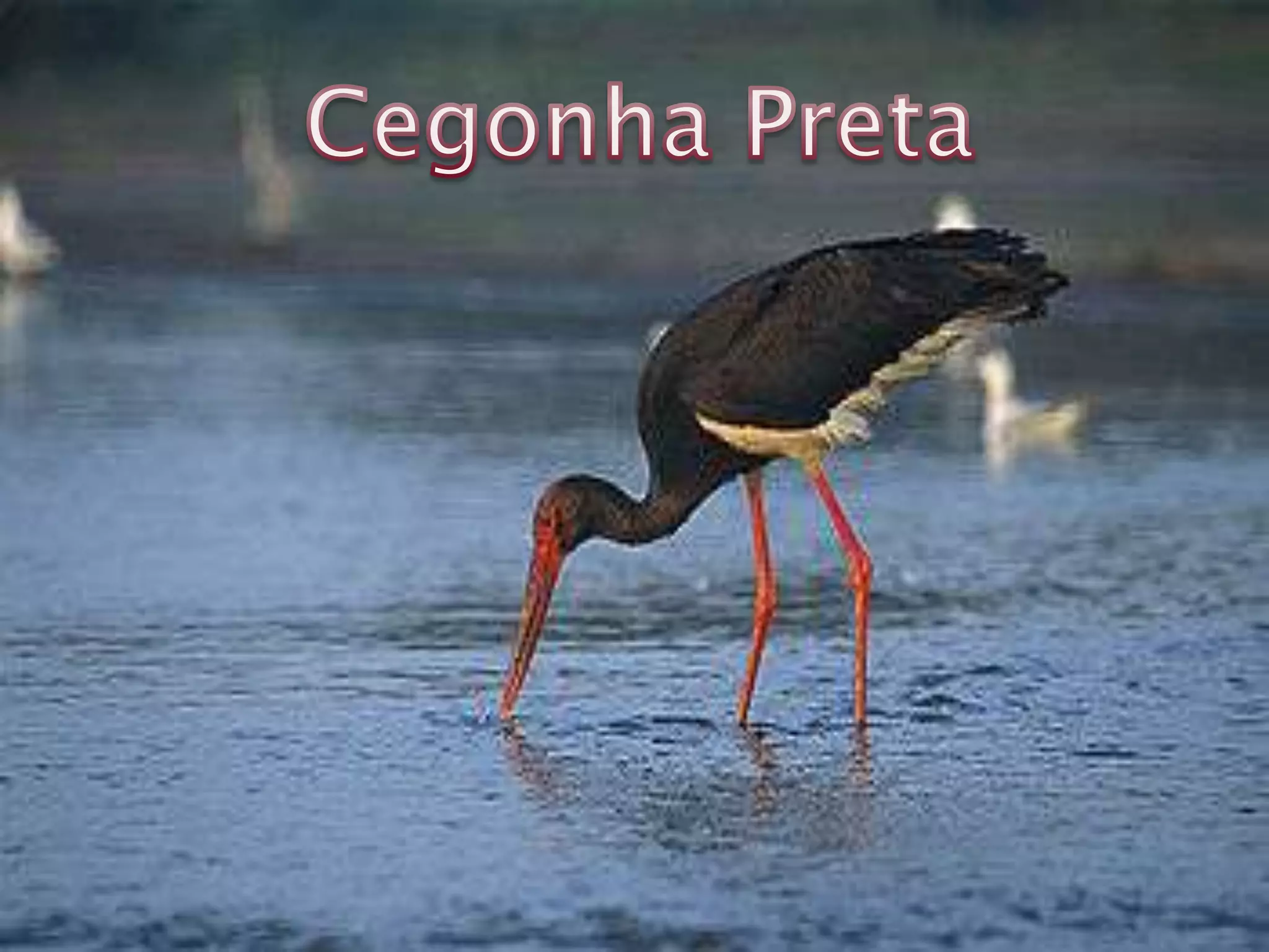 A cegonha-preta tem plumagem preta e branca, alimenta-se de peixes e insetos em regiões com árvores perto de rios. Chega em Março para se reproduzir, mas está em risco de extinção devido à perda de habitat e pesticidas, podendo ser salva com campanhas de proteção e preservação dos locais de nidificação.