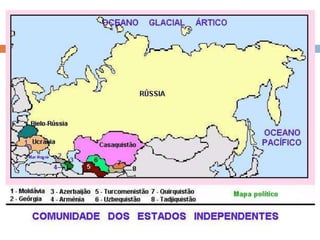 A CEI reúne 12 das 15 repúblicas da extinta União Soviética, estendendo-se pela Europa e Ásia com grande variedade de clima e relevo. Busca manter laços econômicos entre as ex-repúblicas, porém enfrenta problemas como crise econômica e desestruturação da infraestrutura deixada pela URSS.