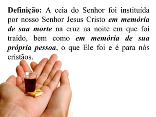 O documento descreve os aspectos da ceia do Senhor, incluindo: