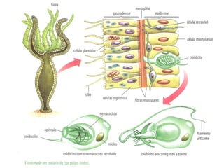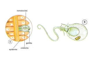 2) Possuem células urticantes chamadas cnidoblastos que protegem o animal e auxiliam na captura de alimentos.
