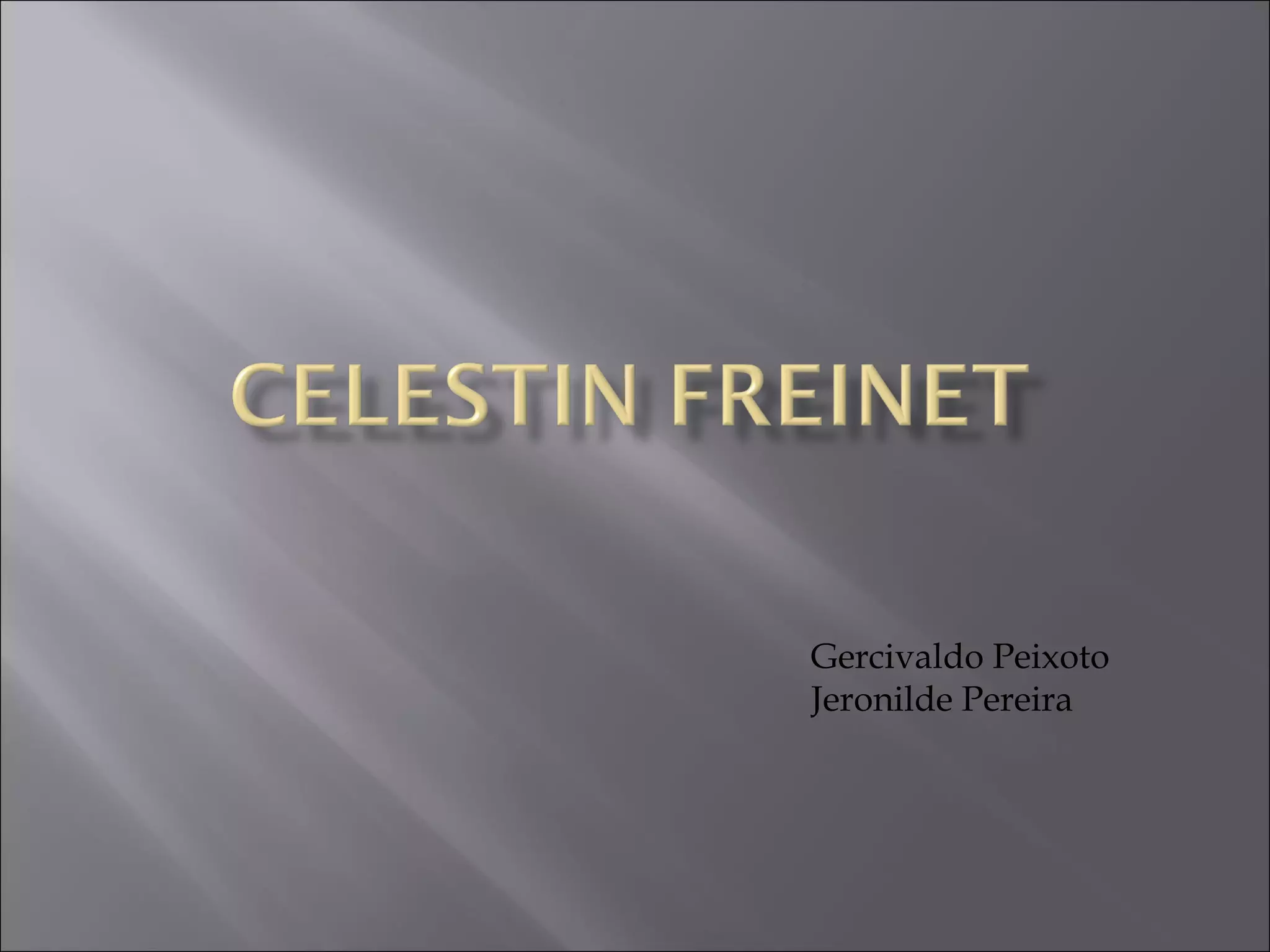 Gercivaldo Peixoto Jeronilde Pereira Freinet foi um educador francês que criou o movimento da escola moderna. Seu objetivo era desenvolver uma escola popular que preparasse cidadãos livres e criativos. Ele propôs várias técnicas de ensino centradas na expressão, atividade e cooperação dos estudantes, como o texto livre, imprensa escolar e correspondência interescolar.