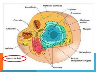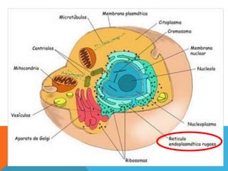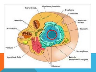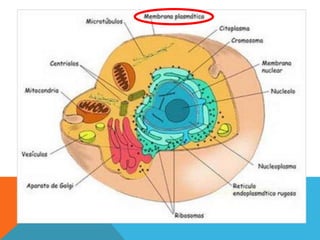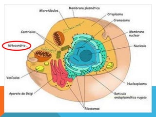 O documento descreve as principais diferenças entre células procariotas e eucariotas. Células procariotas não possuem membrana nuclear nem organelas, enquanto células eucariotas possuem membrana nuclear, mitocôndrias, cloroplastos e outros organelas. O documento também destaca as características que diferenciam células vegetais de animais.