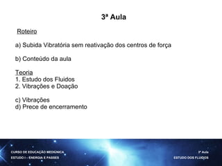 O documento discute o Fluido Cósmico Universal, descrevendo-o como a matéria elementar primitiva que se apresenta em dois estados: eterização ou imponderabilidade e materialização ou ponderabilidade. O Fluido Cósmico Universal é utilizado pelos espíritos para agir sobre a matéria através do pensamento e da vontade, e constitui o perispírito, envoltório do espírito feito de fluidos modificados.