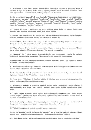 Este documento lista 50 erros gramaticais comuns cometidos em concursos públicos. Entre os erros estão o uso incorreto de palavras como "mau", concordância nominal e verbal errada, emprego inadequado de preposições e pronomes. O texto serve como guia para que candidatos evitem esses erros comuns.