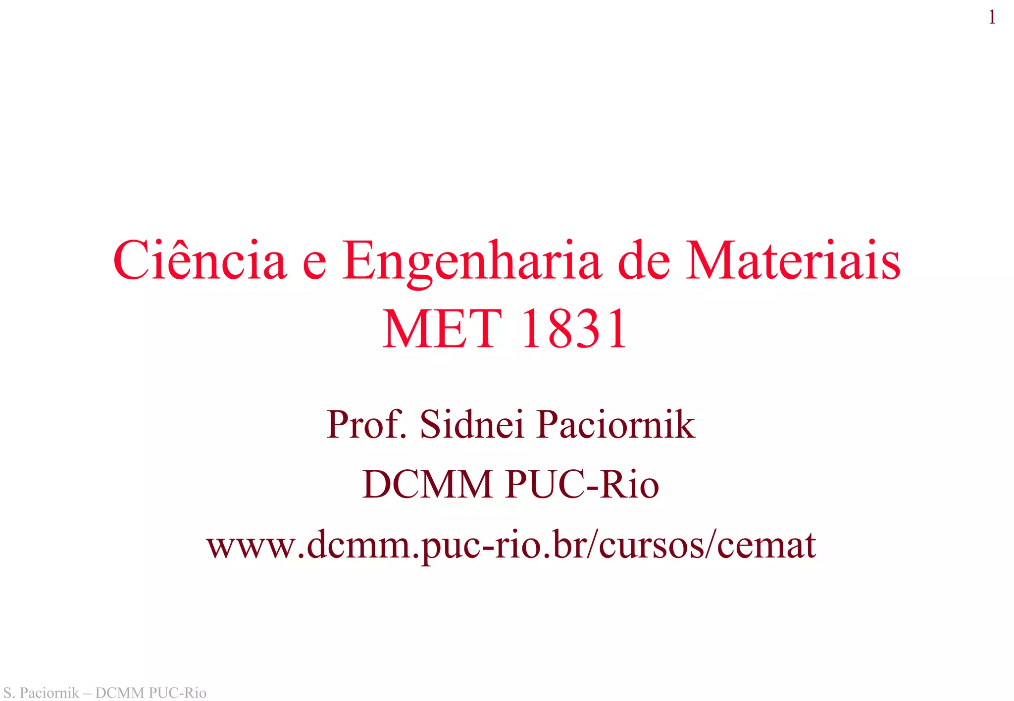 O documento apresenta os principais tipos de materiais - metais, cerâmicas, polímeros, compósitos e semicondutores. Descreve suas propriedades básicas e como são representados na tabela periódica. Também discute os conceitos de estrutura atômica, tipos de ligação química e como estas propriedades determinam as características macroscópicas dos materiais.