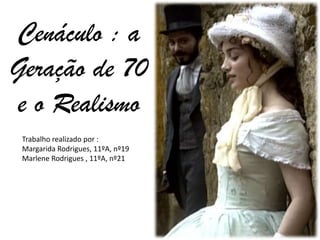 Este documento descreve o movimento literário conhecido como Realismo em Portugal no século XIX, que surgiu como uma reação contra o Ultra-romantismo. A Geração de 70, liderada por intelectuais como Antero de Quental, foi fundamental para esta mudança, promovendo novas ideias através do Cenáculo e das Conferências do Casino. O Realismo passou a enfatizar a observação da realidade em vez do sentimentalismo.