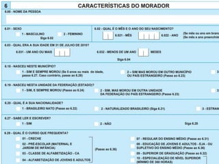 O documento descreve as responsabilidades de um Recenseador no Censo Demográfico, que incluem confirmar ou incluir endereços de residências e coletar dados usando um Dispositivo Móvel de Coleta, além de utilizar um crachá de identificação. O Recenseador é essencial para a qualidade dos resultados finais do Censo.