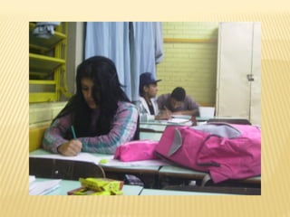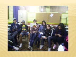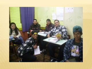 O documento descreve as atividades realizadas pela Escola de Educação de Jovens e Adultos para comemorar o centenário de nascimento do poeta Vinícius de Moraes. As atividades envolveram professores de diferentes disciplinas e incluíram momentos para discutir a estrutura da poesia, a biografia do poeta, a produção de poemas e ilustrações, um sarau literário, uma exposição dos trabalhos e apresentações culturais.