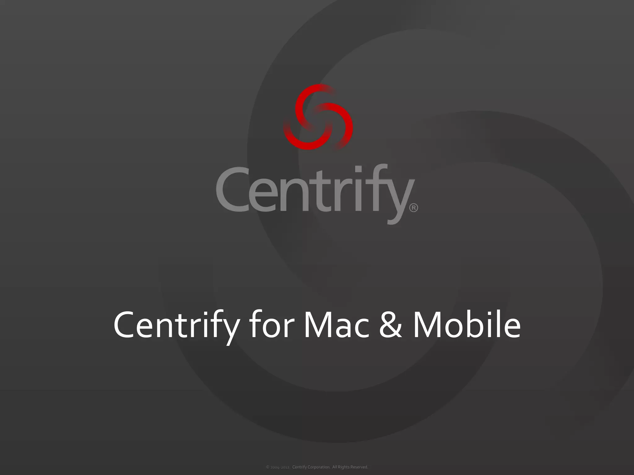 O documento descreve o Centrify para Mac e dispositivos móveis, permitindo a gestão centralizada de identidades e segurança para esses sistemas através do Active Directory, com recursos como login único, políticas de grupo e autenticação forte.