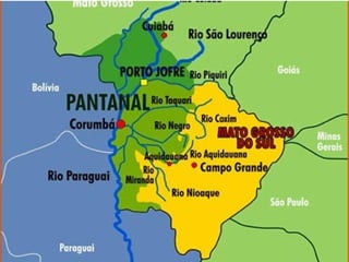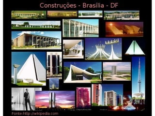 O documento descreve características da região Centro-Oeste do Brasil, incluindo o Pantanal, a maior planície inundável do mundo, e detalhes sobre a capital Brasília, como sua diversidade cultural e festividades locais como as Cavalhadas em Pirenópolis e o Cururu no Mato Grosso e Mato Grosso do Sul.