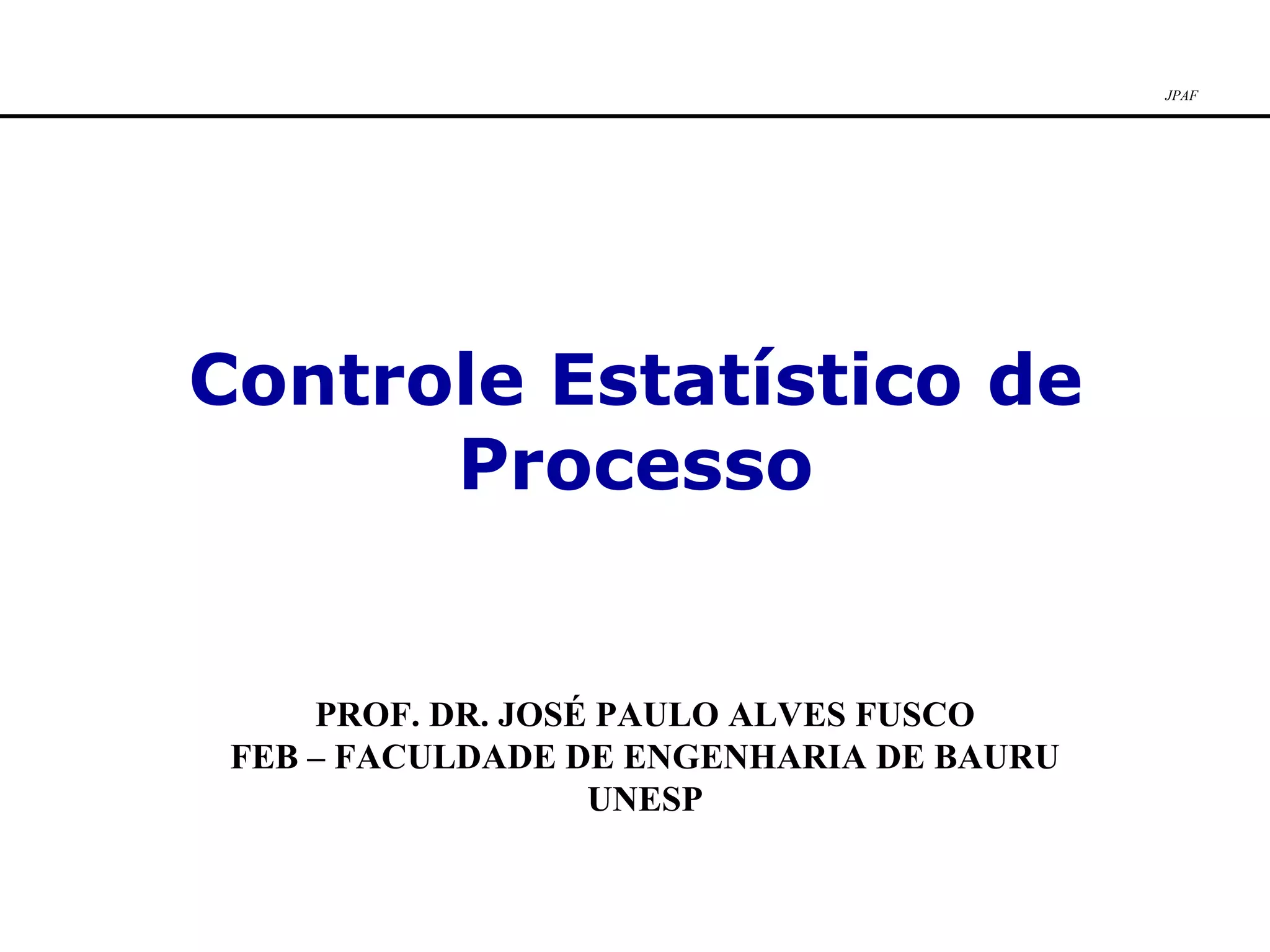 O documento discute conceitos básicos de controle estatístico de processo, incluindo definições de qualidade, controle de qualidade, distribuição normal e gráficos de controle. Ele também descreve os fatores necessários para implementar um programa de avaliação e controle de qualidade e as responsabilidades das partes envolvidas na cadeia de produção-consumo.