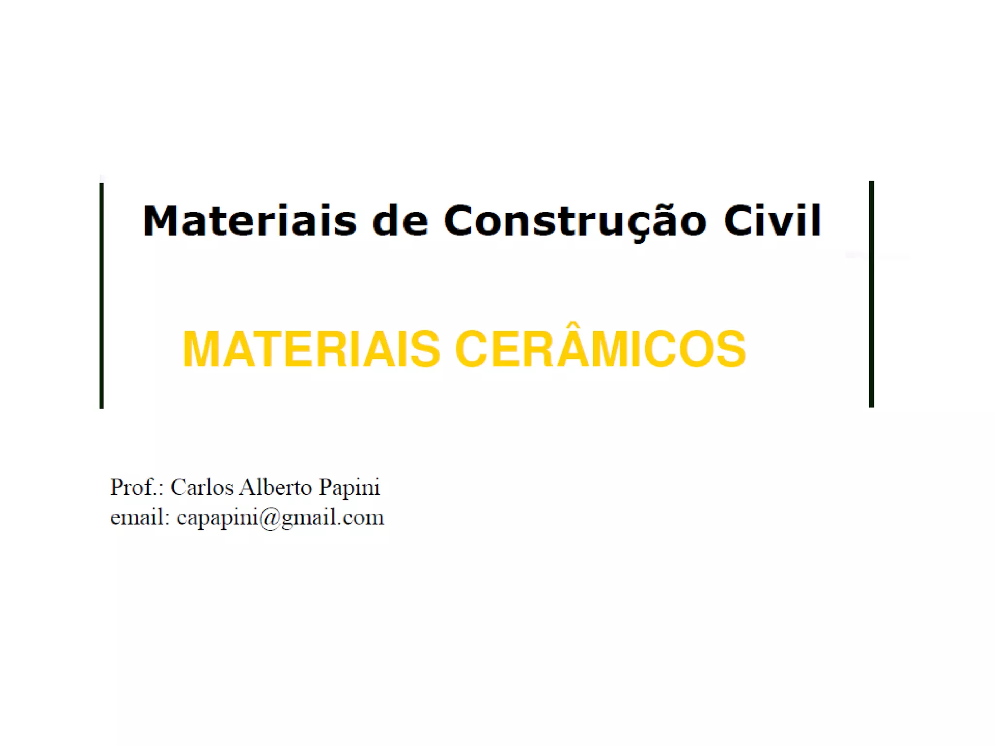 O documento fornece uma definição e classificação detalhada dos materiais cerâmicos. Apresenta seis principais categorias de cerâmicas: 1) Cerâmica Vermelha, 2) Materiais de Revestimento, 3) Cerâmica Branca, 4) Materiais Refratários, 5) Isolantes Térmicos, 6) Fritas e Corantes. Também discute processos de fabricação, propriedades, aplicações e normas técnicas relacionadas a blocos cerâmicos usados na construção civil.