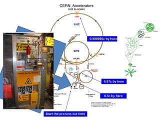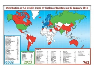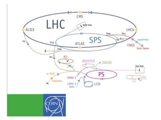 O CERN é o maior laboratório de física de partículas do mundo localizado na fronteira franco-suíça. Fundado em 1954, possui 20 estados membros europeus e realiza experimentos como o LHC para recriar as condições existentes logo após o Big Bang e estudar a matéria e partículas elementares.