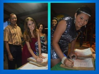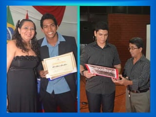 A cerimônia de formatura do ensino médio de 2011 recebeu alunos, responsáveis e autoridades escolares. Os alunos assinaram a entrega dos certificados no salão lotado. A diretora e o mestre de cerimônias fizeram discursos e um professor foi homenageado. As fotos registraram os momentos da festa.