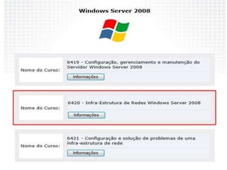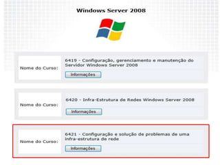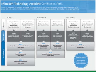 1) Diferentes níveis de certificação como MTA, MCTS, MCITP entre outros;