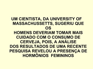 Um estudo sugeriu que beber cerveja pode aumentar características femininas em homens, como ganho de peso, falar sem parar e se emocionar facilmente. Um teste com 100 homens que beberam 5 litros de cerveja cada mostrou que todos desenvolveram esses traços. O documento alerta os homens a evitar a cerveja e migrar para destilados e vinhos.