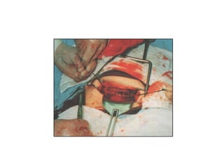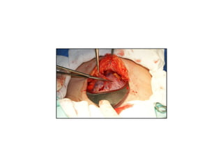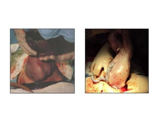 O documento descreve os procedimentos e complicações da cesariana. Em três frases: