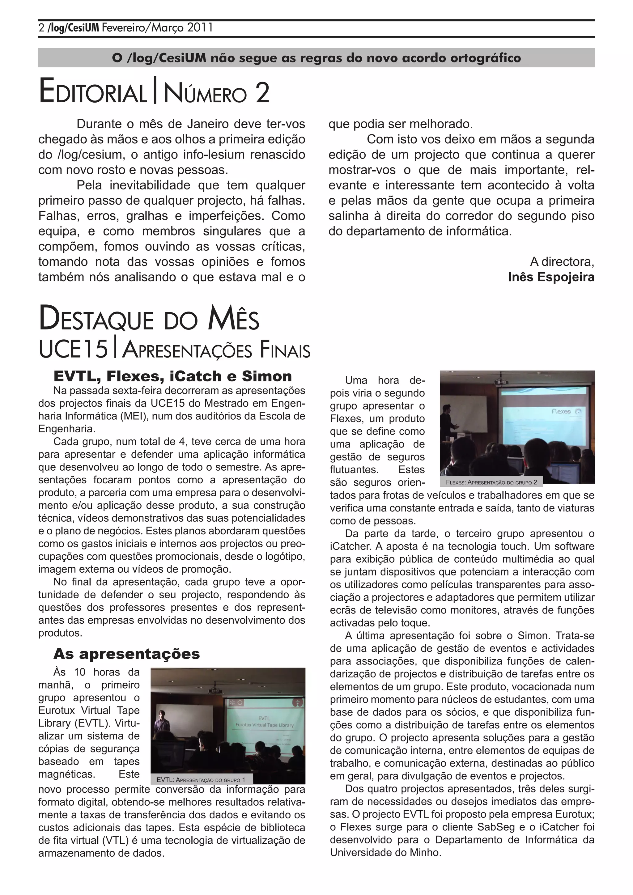 Este documento resume as apresentações finais de projetos de alunos da UCE15 do Mestrado em Engenharia Informática na Universidade do Minho. Quatro grupos apresentaram aplicações que desenvolveram ao longo do semestre para clientes reais. Os projetos abordaram gestão de seguros, gestão multimédia interativa, gestão de eventos para associações e virtualização de sistemas de cópias de segurança.