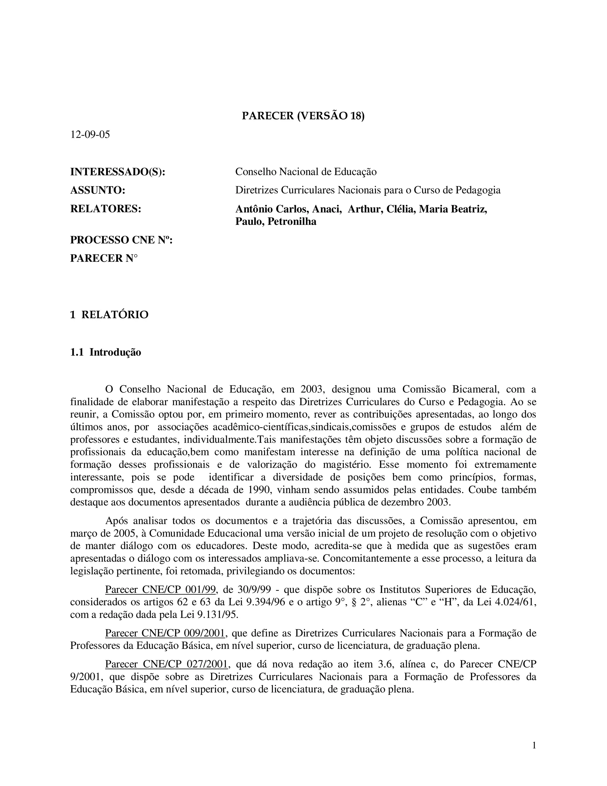 Este documento apresenta as Diretrizes Curriculares Nacionais para o Curso de Pedagogia no Brasil. Após revisar contribuições de diversas entidades, a comissão elaborou estas diretrizes para orientar a formação inicial e continuada de professores e gestores educacionais, considerando a diversidade regional e cultural do país. As diretrizes visam qualificar a educação básica e superior brasileira, com base em debates das últimas décadas sobre o assunto.