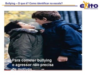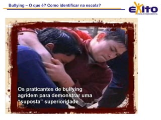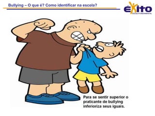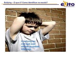 Bullying é a intimidação e humilhação sistemática de uma vítima através de insultos, ataques físicos e verbais, espalhar rumores, depreciar a vítima ou sua família. As vítimas comumente são crianças e adolescentes inseguros ou bons alunos, enquanto os autores geralmente são pessoas inseguras ou sociopatas que se divertem causando sofrimento.